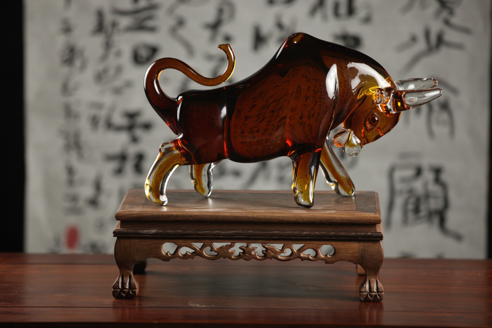 Product Features:The amber-colored glass is transparent and richly textured, vividly depicting the ox's form, with smooth, natural muscle lines and exquisitely crafted details such as the horns. The inherent translucency and vibrant colors of glass make this ornament more than just a decorative piece; it also embodies the ox's symbolic meaning of strength, endeavor, and prosperity.