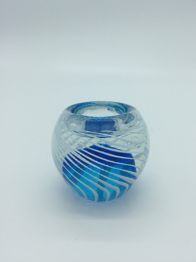Product Features:The blue and white color scheme, combined with spiral patterns, creates a refreshing and dynamic effect, reminiscent of ocean waves and whirlpools. The rounded shape of the candlestick, made of transparent glass, creates a dreamy and layered effect when the candle is lit, creating a romantic and tranquil atmosphere.
