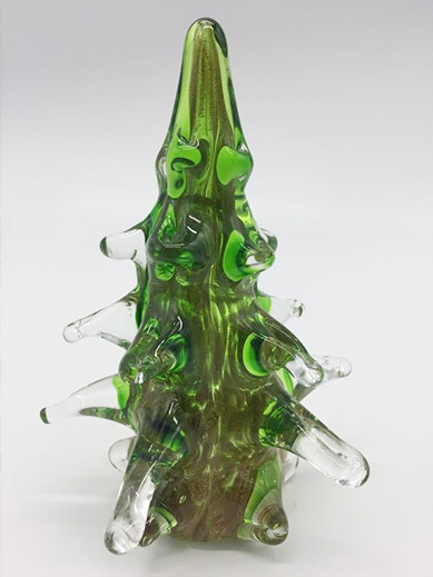 Imagine it on your fireplace mantel: This hand-blown glass Christmas tree catches every strand of Christmas light, turning your living room into a warm, glowing haven.