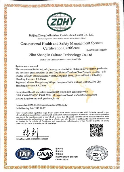 We have met all the requirements for a occupational health and safety management system according to" ISO 45001: 2018", and got the certification accordling.