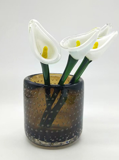 Product Features:The design is based on the Calla Lily, with an elegant and stretched flower shape, showcasing the Calla Lily's softness and agility. The brown bubble vase is simple and elegant, creating a contrast in color and texture with the pure white Calla Lily. The overall shape is harmonious and full of artistic tension, as if a beautiful moment captured from nature is permanently frozen.