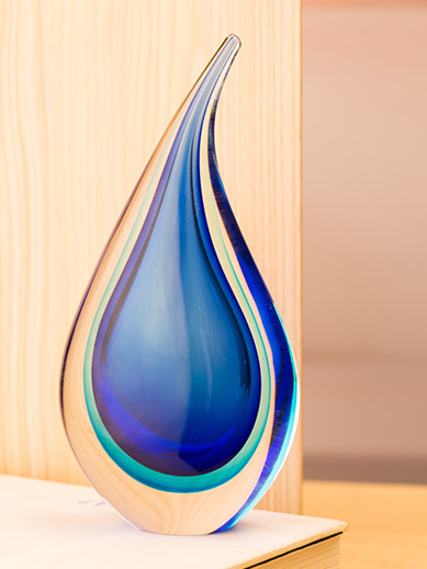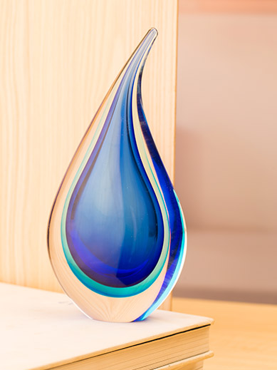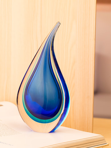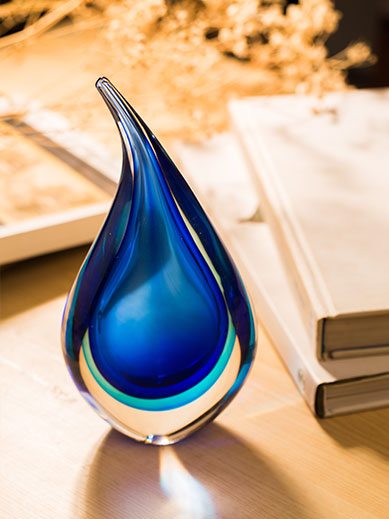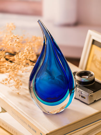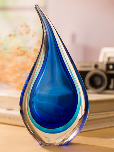Product Features:Made entirely by handmade colored glass craftsmanship, the streamlined water drop shape is matched with blue and white gradient colors, the transition is natural and dynamic, and each piece is a unique work of art.