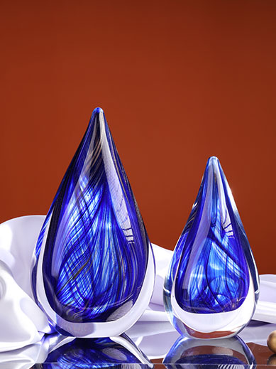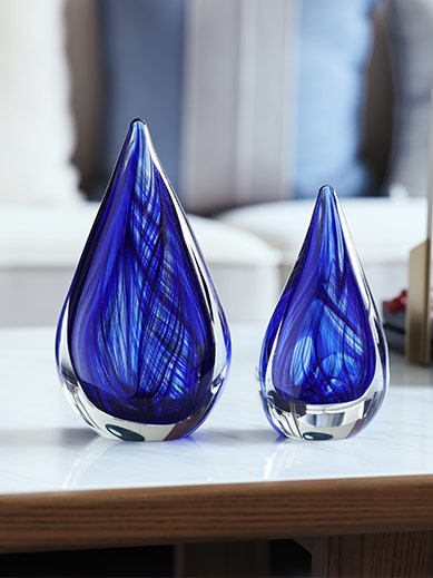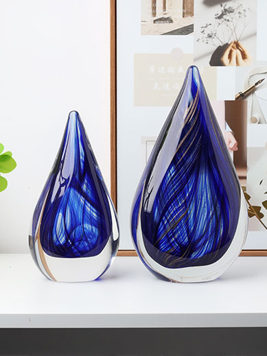 Product Features:The flowing lines resemble a drop of azure water about to fall, creating a powerful visual impact. Crafted using hand-blown glass, the internal texture resembles interwoven blue threads, creating a unique work of art. The deep blue hue, combined with the transparent glass base, creates a rich tapestry of color.