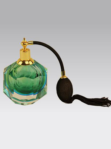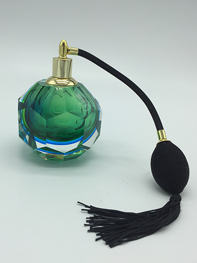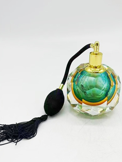 Color and Texture: Made of gradient green crystal glass, this bottle exudes a sense of transparency and luxury, complemented by black and gold components, creating a refined and elegant aesthetic.
