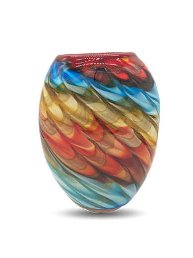 Product Features:Handcrafted swirl patterns ensure that each piece possesses a unique texture. The interplay and gradation of multiple colors, including red, blue, and yellow, create a strong visual impact. The oval, bulging silhouette is imbued with artistic tension.