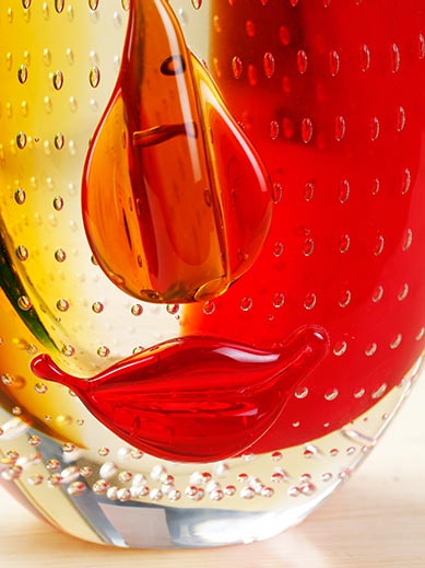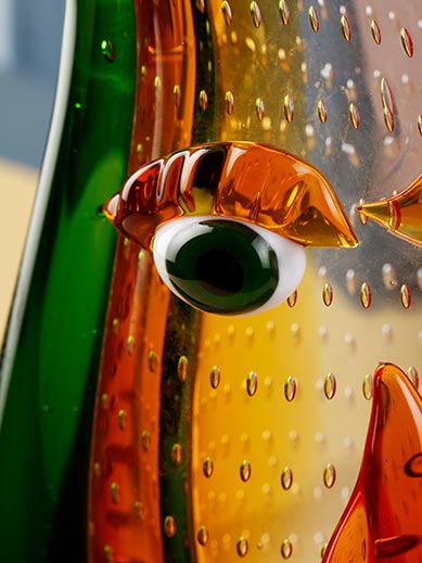 Product Features:This vase, crafted using Murano glass techniques, incorporates an artistic human face design in vibrant colors (red, yellow, green, brown, etc.) and exquisite details (textured face, expressive eyes, and unique hairstyle). It serves as both a practical vase and an artistic piece, adding an artistic touch and personal charm to any space.